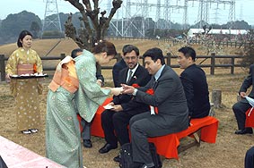 愛・地球博 一市町村一国フレンドシップ事業の知多市のマッチング国であるカタール国大使館の全権公使 カリド・アルバックル氏と広報担当 アムル・ハッスーナ氏が平成16年2月22日から開催しました第13回佐布里梅まつりに来賓として参加されました。