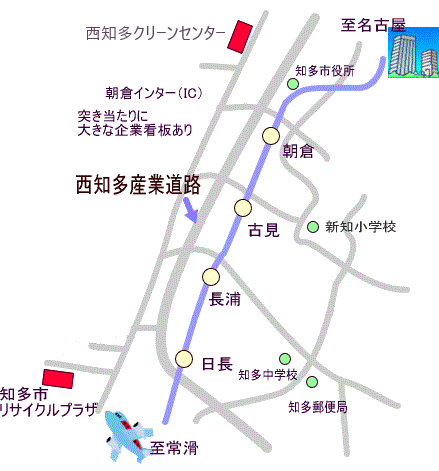 車の場合は、西知多産業道路(国道155号)日長ICから約5分