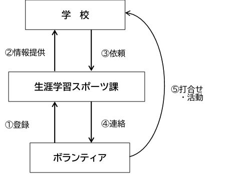 ④生涯学習スポーツ課から該当ボランティアへ連絡します。