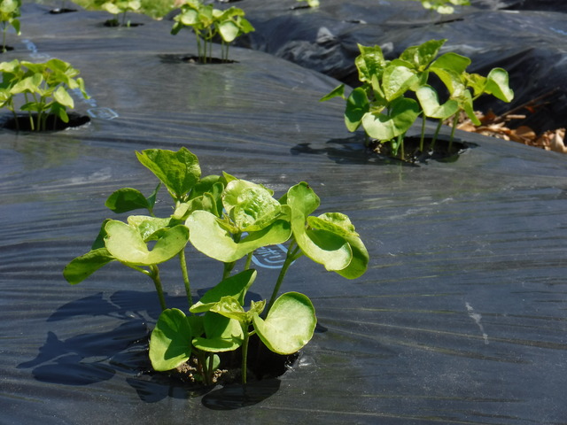 昔の暮らしふれあい教室で博物館の中庭の畑にサツマイモの苗を植えました。