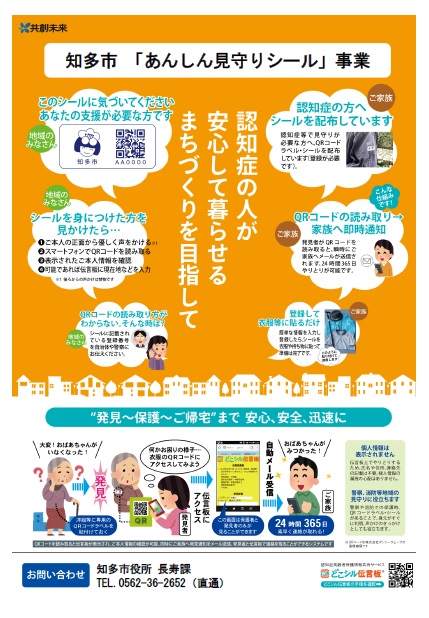 認知症等の高齢者とその家族が知多市で安心して暮らせるよう、「知多市認知症高齢者等あんしんネットワーク事業」事前登録者を対象とし、高齢者の衣類等に貼るシールを配付します。