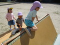 幼児組は、たたみのぼりや鉄棒、なわとびなど様々な運動器具や道具を使って体を動かして遊ぶことを楽しんでいます。