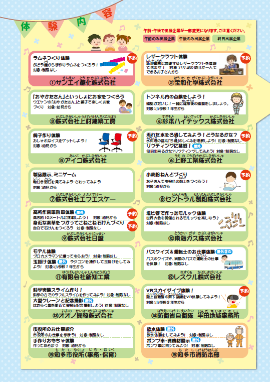 ・事前申し込みが必要な体験があります。詳細は後日更新します。