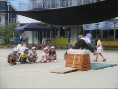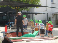 運動会に向けて、保育士や友達と一生懸命に取り組んでいる子ども達です。