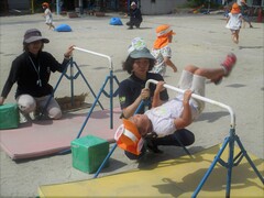 友達と協力をして橋を渡ったり、転がったり、鉄棒にも挑戦!