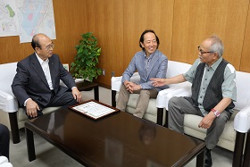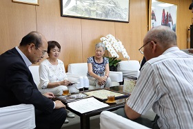 市長は「いただいた作品は、大切に保管し、新庁舎が完成したら、新しい市長室に飾らせていただきます。」と述べました。