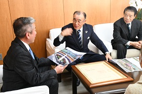 旭桃台シニアクラブ「花つぼみ会」様が、令和7年秋の緑綬褒章を受章したことを、市長に報告しました。