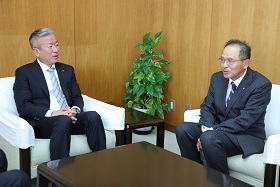 第45回危険業務従事者叙勲で瑞宝双光章を受章された、元知多市消防長の黒宮俊行さんが市役所を訪れ、市長に受章を報告しました。