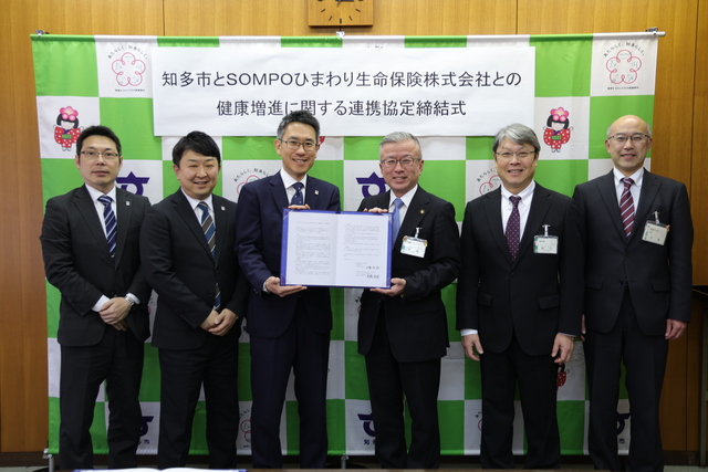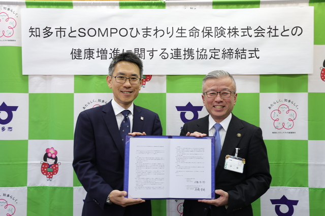 知多市とSOMPOひまわり生命保険株式会社は、相互の連携により、市民及び企業・事業所の従業員の健康増進や市民サービス向上のため、以下のとおり健康増進に関する連携協定を締結しました。