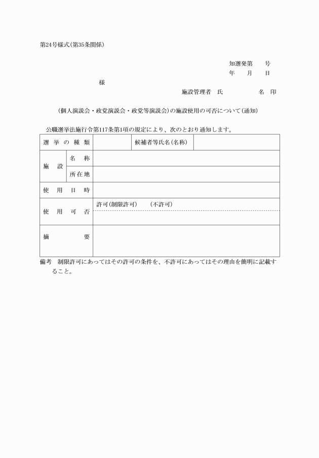 第5条 公職選挙法施行令(昭和25年政令第89号。以下「令」という。)第1条の3の規定により行う通知は、第1号様式による。