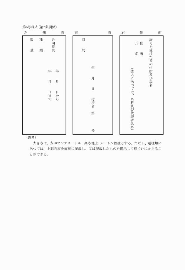 (6) 許可の申請に係る使用又は収益に関して他の行政庁の許可、認可等の処分を必要とするときは、これらの処分を受けていることを証する書類又は受付見込みに関する書類