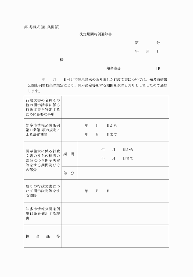 第1条 この規則は、知多市情報公開条例(平成12年知多市条例第41号。以下「条例」という。)の規定に基づき、市長の保有する行政文書の開示等に関し必要な事項を定めるものとする。